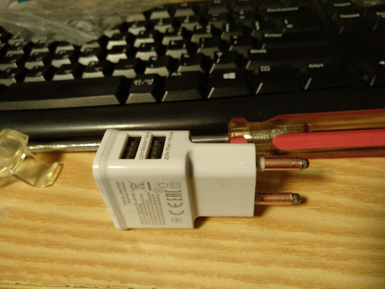 직구한 안마기용 2S(7.2V) 충전기에도 구리튜브작업 해 주었다.
